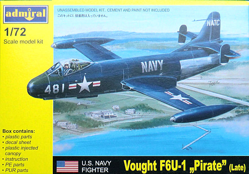 Vorbild: Die Vought F6U-1 entstand aufgrund einer Ausschreibung der US Navy vom September 1944. Gefordert wurde ein trägergestütztes Jagdflugzeug mit einem Westinghouse 24C-Triebwerk. Bei diesem Flugzeug erhielt eine Außenhaut aus Metalite. Das war ein Sandwich-Produkt und bestend aus zwei Schichten Leichtmetall zwischen denen Balsaholz eingeklebt wurde. Beim Seitenleitwerk wurde Fabrilite benutzt. Hier wurde das Metall durch Fiberglas ersetzt. Die Lufteinläufe bestanden aus GFK. Somit kann man bzgl. der Zelle von einem innovativen Flugzeug sprechen.