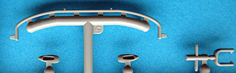 Dieser dreiteilige Satz bietet Ersatz für den Fahrwersträger des Hauptfahrwerks und das Federbein des Bugrades sowie eines Hydraulikzylinders dafür. Es gibt zwei Angüsse, die entfernt werden müssen, ansonsten sind die Teile aber direkter Ersatz für die Bausatzteile. Wie bereits in der Bausatzbesprechung erwähnt, halte ich den Austausch aus Sicht der Stabilität nicht zwingend für notwendig, allerdings hat man (meiner Meinung nach) weniger Äger damit, den Anguss zu entfernen, als das Plastikteil sauber und vor allem heil aus dem Gießrahmen zu schnitzen.