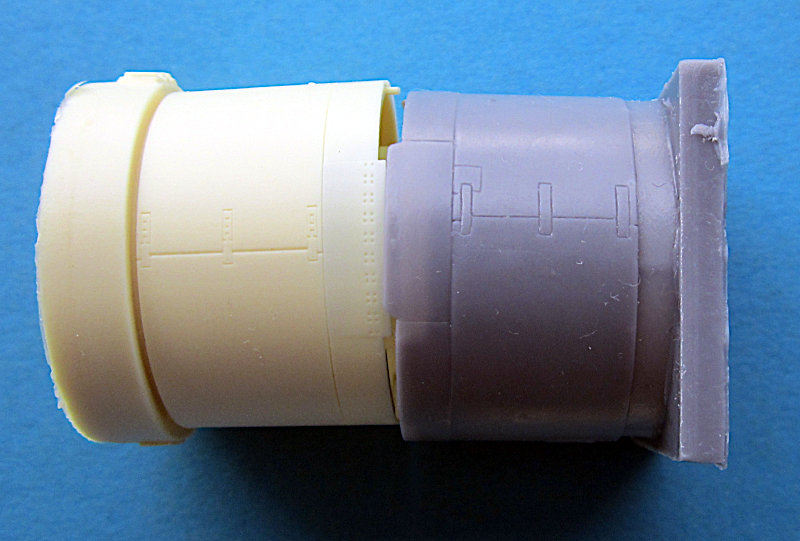Um den kleinen Bausatzfehler auszugleichen gibt es derzeit zwei Sätze, diesen und den von Barracuda. Ich habe mal Bilder zum Vergleich beider Teile gemacht. Das Barracuda Teil in beige wirkt ein wenig filigraner bei der Scharnierlinie scheint mir Aerocraft korrekter zu sein.