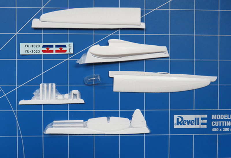 Bausatz: Konstruktion und Mastermodell des 72er Resinmodels stammen vom YASIG-Gründer Nenad Miklusev. YASIG ist die Special Interest Group für Flugzeuge/Flugzeugkonstruktionen aus dem Gebiet des früheren Jugoslawien. Der aus wenigen Teilen bestehende Kit (Foto) ist sauber abgegossen und bereitet keinerlei Probleme beim Zusammenbau. Decals für die Bemalung auf dem Cover und die gezeigte Bauanleitung sind vorhanden.