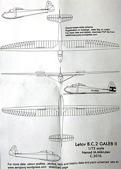 Vorbild: Die Cijan BC-2 Galeb ist ein Vorkriegs-Segelflugzeug-Projekt das wegen des Kriegsausbruchs nicht mehr realisiert wurde. Lediglich zwei Prototypen wurden gebaut, aber nie eine Serienproduktion erwogen, da das Flugzeug im Wettbewerb dem Sostaric Jastreb Segelflugzeug unterlag.