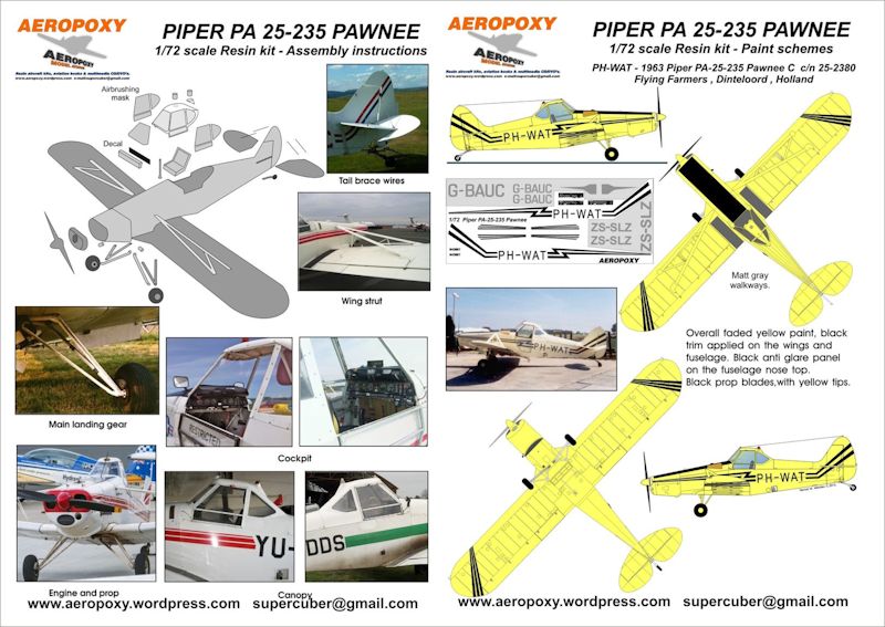 Vorbild: Die PA-25 Pawnee war ein von Fred Weick 1957 aus der PA-18 und von Komponenten der PA-22 entwickeltes Agrarflugzeug. Piper Aircraft fertigte zwischen 1959 und 1981 beachtliche 5167 (!) Exemplare. Im April 1988 verkaufte Piper Aircraft Inc. offiziell die PA-25-Serie mit allen Zeichnungen, Konstruktionsdaten, Ersatzteilen, Werkzeugen, Katalogen und Handbüchern an die Latino Americana de Aviación S.A. in Argentinien.