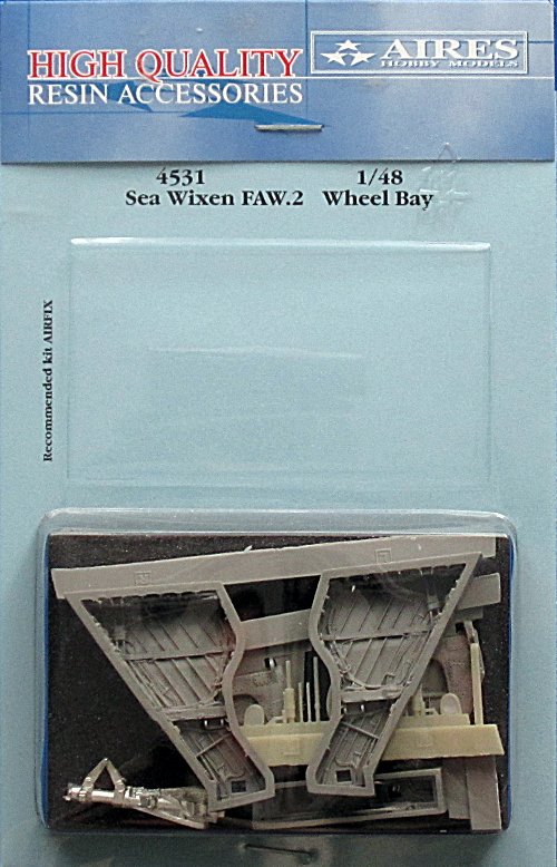 Mittlerweile sind einige Zubehörsätze für den schönen Bausatz der Sea Vixen von Airfix (Review) erschienen. Auch Aires lässt sich nicht lumpen und spendiert dem Bausatz Fahrwerksschächte und -beine. Letztere sind aus Metall, was ein Novum von Aires ist.