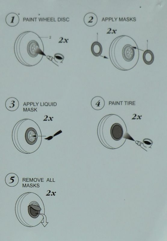 In der Tüte befinden sich zwei sauber gegossene Räder aus Resin. Weiterhin gibt es Vinylmasken. Die Räder sind rund und prall.