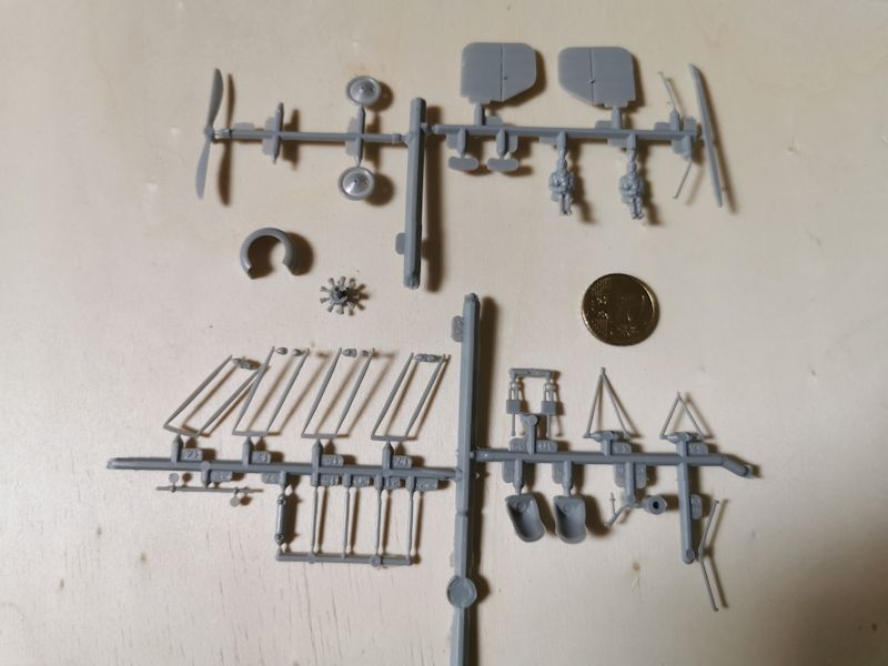 Die Plastikteile sind entsprechend dem damaligen Stand der Formtechnik relativ grob, die Form stammt von 1967. Auch Auswerfermarken und Grate sind, wie anscheinend zu der Zeit üblich an den unmöglichsten Stellen. Hier stand damals der Bastel- und Spielspaß für die Jugend eindeutig im Vordergrund. Historische Korrektheit und Detaillierung waren zweitrangig.