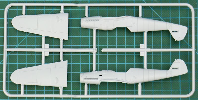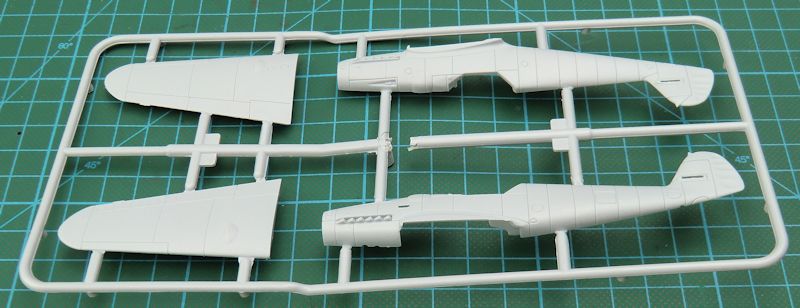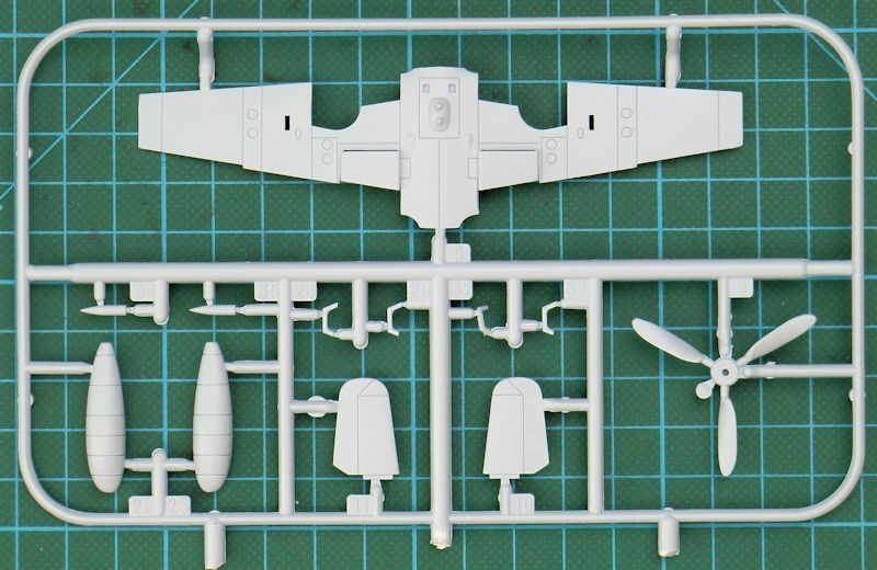 Außen gibt es feine Oberflächendetails und einen gut gelösten Aufbau. Die Tragflächen und das Höhenleitwerk besitzen dank des Aufbaus scharfe Hinterkanten. Nur das Seitenruder ist geteilt. Das Fahrwerk kann in ein- oder ausgefahrener Position eingebaut werden. Dafür gibt es optionale Teile. Auch die Bewaffnung bietet einige Möglichkeiten.
