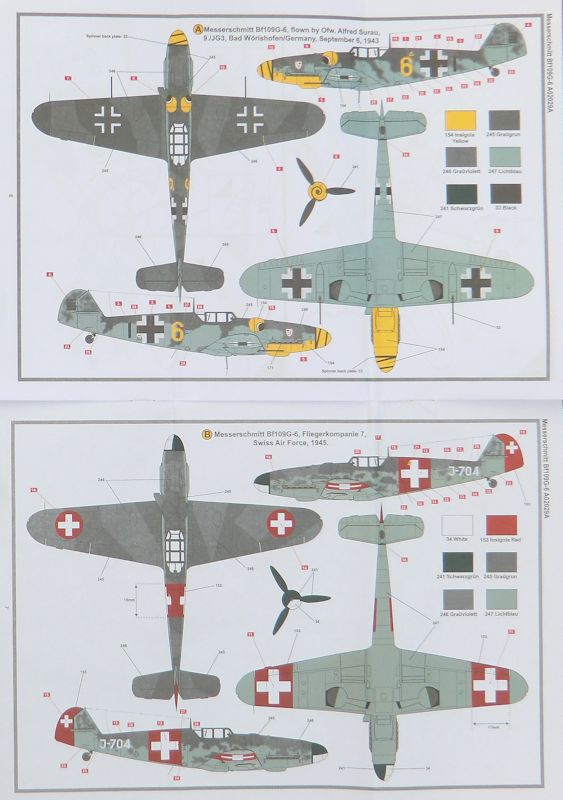 Vorbild: Die Messerschmitt Bf 109G-6 ist die wohl bekannteste Version des meistgebauten deutschen Flugzeugs. Aufgrund der Anforderungen war man gezwungen in die kleine Zelle immer größere und schwerere Waffen einzubauen. Der Einbau der MG 131 im Rumpf an der Stelle der bisherigen MG 17 erforderte diese für die G-6 und auch für die spätere G-14 so charakteristische Beulen.
