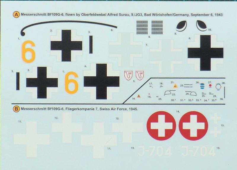 Ich finde die Bemalungsoptionen mal gut gewählt und hier gibt es mal nicht nur das Luftwaffenallerlei! Die Decals sind ohne Versatz auf hellblauem Trägerfilm gedruckt.