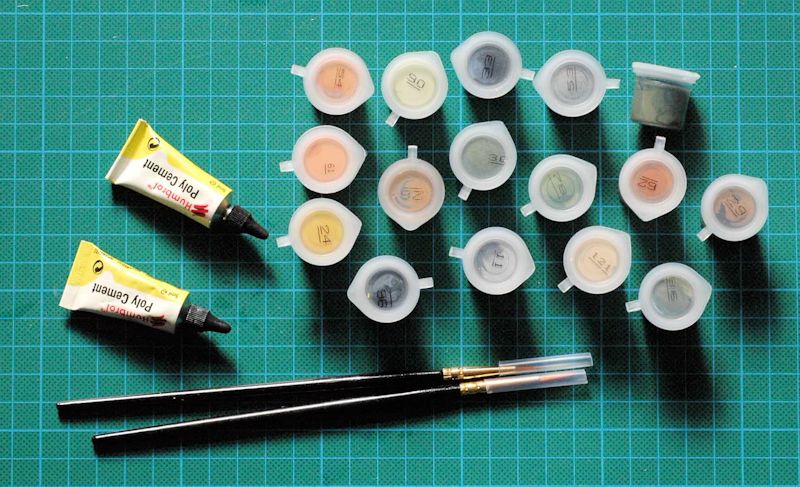 Die Bauanleitung mit farbigen Bemalungsanleitungen wird als 44 seitiges geklammertes Heft angeboten. Als Zugabe erhält der Modellbauer noch zwei Pinsel, zwei Tuben Humbrol Klebstoff und (sehr willkommen) 16 kleine Farbtöpfchen mit authentischen Acrylfarben aus dem Humbrol-Programm.