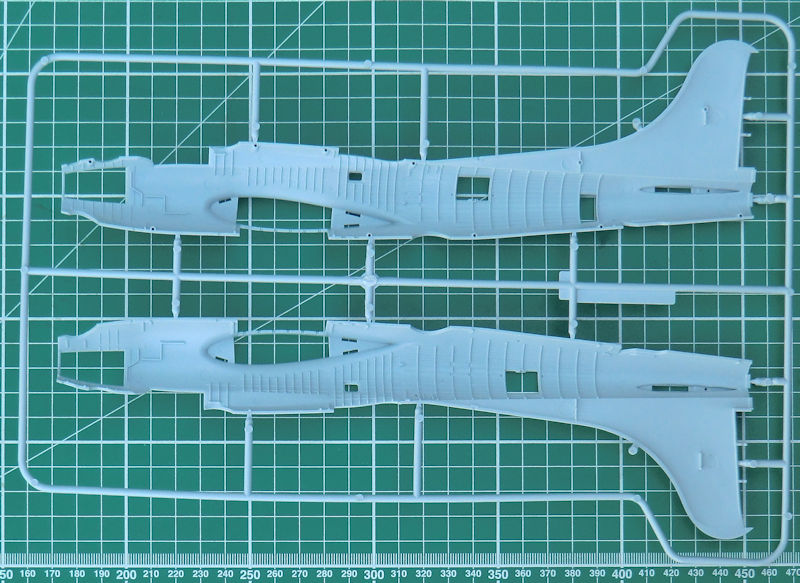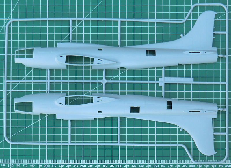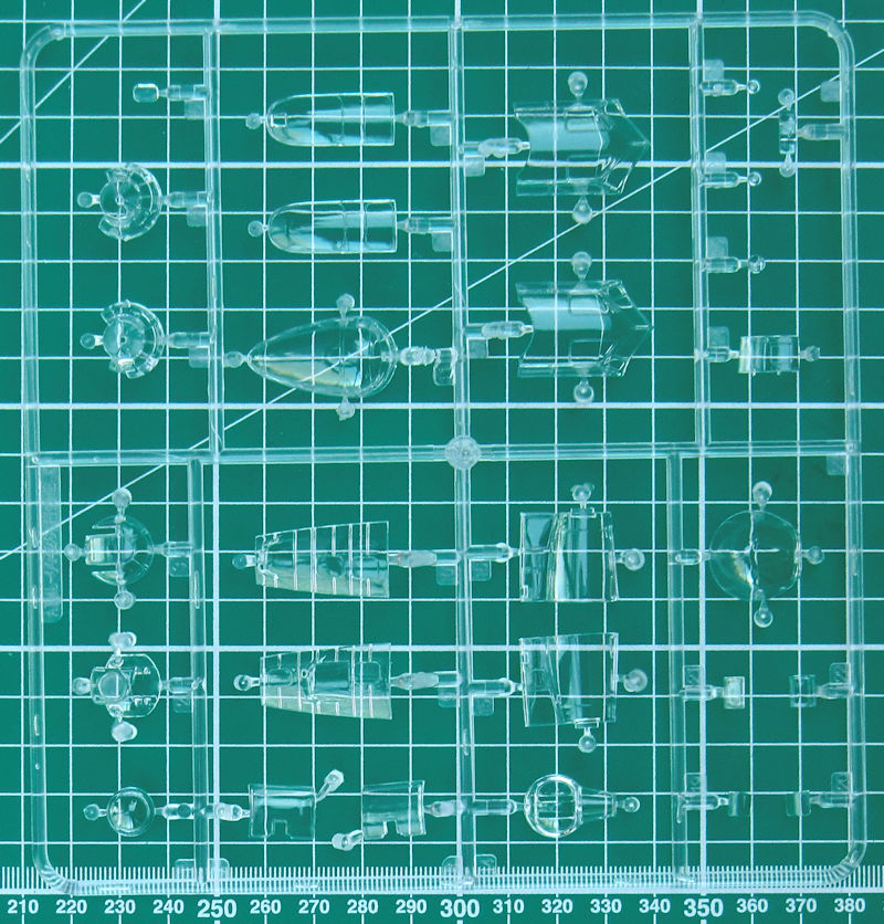 Der einziehbare Sperry-Turm unterm Rumpf ist aus sechs Teilen zusammenzubauen und soll auch danach noch drehbar sein. Der typische Heckstand der G-Version fällt ein wenig in der Detaillierung ab. Allerdings sind die größeren Teile aus Klarsichtmaterial.