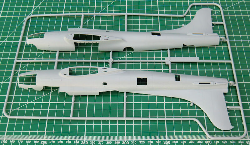 Alle Bauteile besitzen feine Strukturen und was AIRFIX hier zumeist an Details liefert, das ist umwerfend. Der Bau beginnt hier mit dem Cockpit. Hier hat sich AIRFIX sehr gut ausgelebt. Allerdings sollte man ein paar Sitzgurte einbauen. Beim geschlossenen Cockpit ist von den vielen Details kaum zu sehen. Weiterhin hat AIRFIX innen eine komplette Struktur an den Rumpfinnenseiten nachgebildet. Für das Instrumentenbrett gibt es ein Decal. Als nächstes folgt der Bau des Bombenschachtes samt der stabilen Tragflächenholme. Dann folgen die hinteren Besatzungräume. Diese hat AIRFIX schon recht ordentlich ausgestattet.