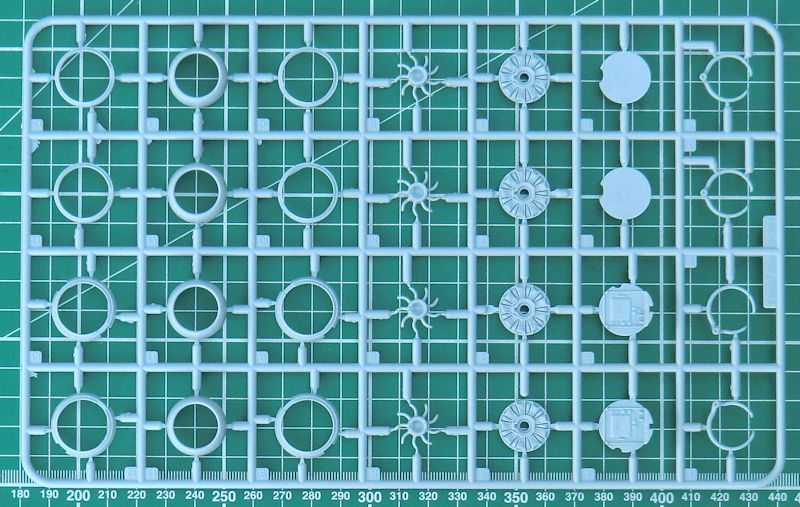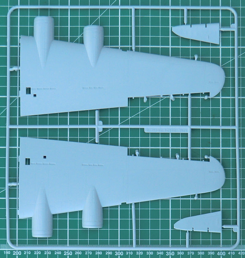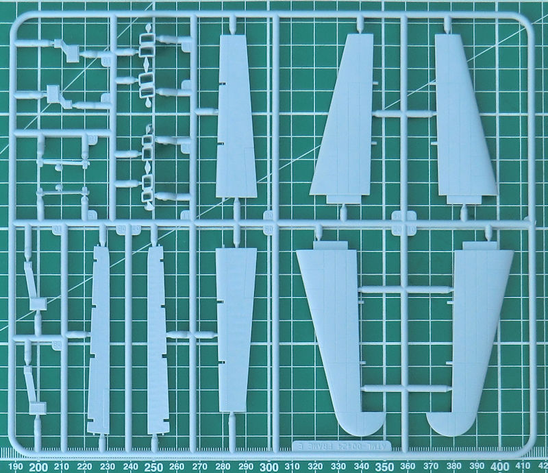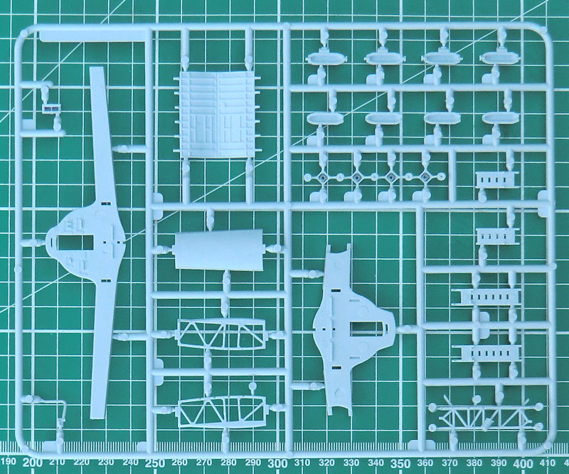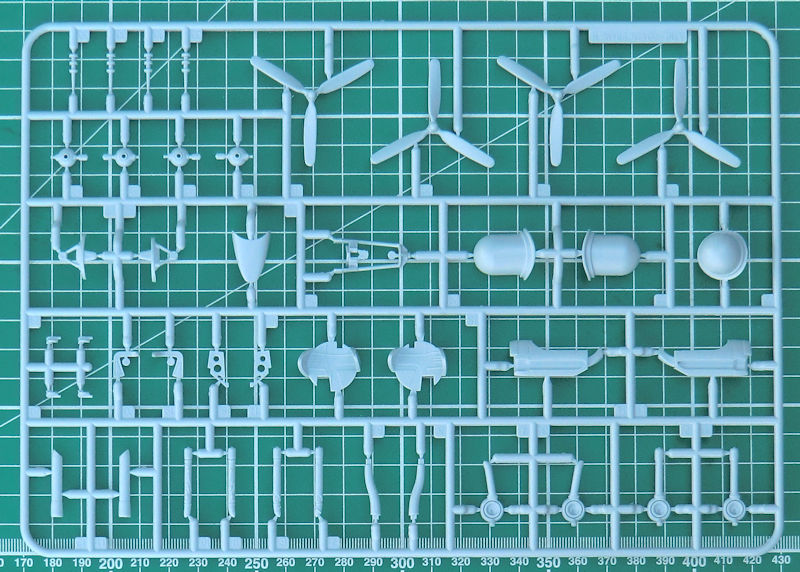 Im attraktiven Stülpkarton befinden sich gut verpackt neun hellgraue Spritzlinge mit insgesamt 217 Teilen, ein Rahmen Klarsichtteile mit 29 Teilen, ein Decalbogen und die übersichtliche Bauanleitung. Die Detaillierung der Bauteile ist hervorragend und auf der Höhe der Zeit. Als Schwäche des Kits möchte ich die etwas einfachen Motoren bezeichnen. Hier gibt es nur jeweils ein Sternrelief. Dieser Bausatz muss sich gar nicht verstecken und gerade weil es so viele Zubehörsets gibt sollte man sich zuerst den Bausatz ansehen und dann entscheiden was man verbessern möchte.