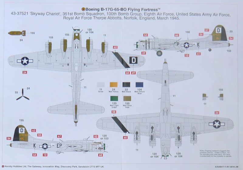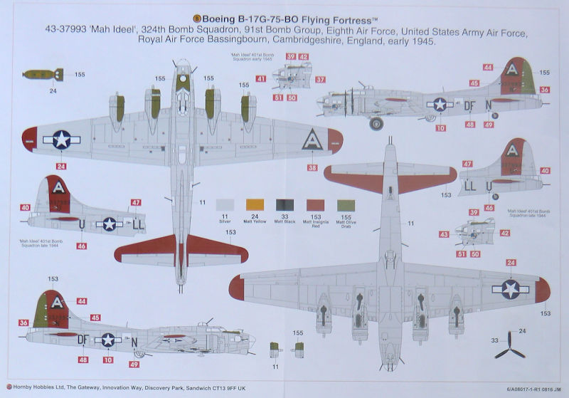 Die Bemalungshinweise sind für das Humbrol-System und die Bemalungshinweise sind schön groß und eindeutig. Der Decalbogen enthält auch eine Menge Wartungshinweise und ist tadellos im Register gedruckt. Zum Anbringen gibt es einen separaten Plan für die Wartungshinweise!