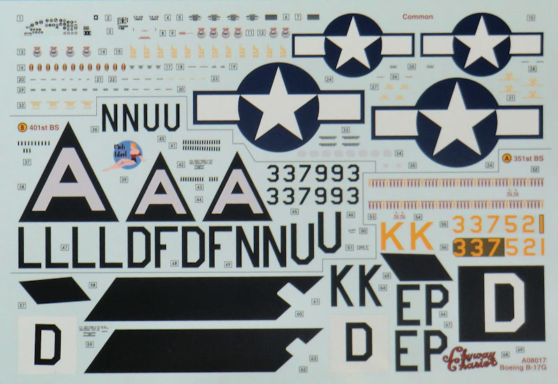 Bausatz: Dieser neue AIRFIX-Kit der Boeing B-17G Flying Fortress erschien Ende letzten Jahres. Zeitgleich möchte ich auch einige Zubehörsets von eduard vorstellen. Von den vier in der Regel in 1/72 erhältlichen B-17-Bausätzen ist dieses der jüngste. Der Hasegawa-Kit war noch eine Kooperation mit FROG. Dann folgte ACADAMY-MINICRAFT in den 1990er Jahren mit einer B-17-Reihe und bei ACADEMY erfolgen immer wieder Auflagen mit neuen Decals. Es folgte 2010 Revell mit einem tollen Bausatz mit vielen schönen Details und nun hat AIRFIX nachgelegt.