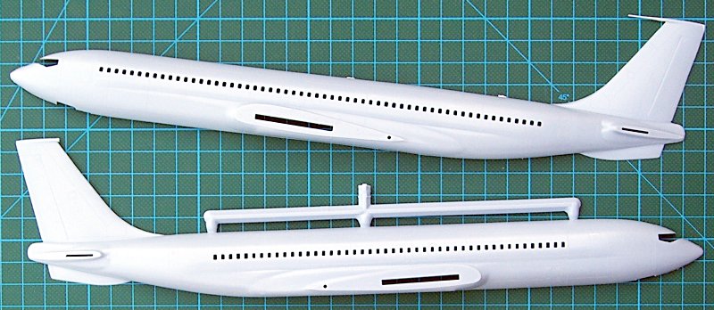Die Teile passen so einigermaßen zusammen, allerdings wird die Schnauze in der Form zurecht kritisiert. Brauchbar, und wohl die besten der derzeit auf dem Markt befindlichen B707-Modelle, sind die Tragflächen.