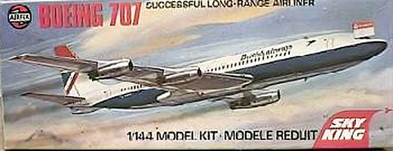 Das Modell: Der Spritzguss stammt aus dem Jahre 1 9 6 3 und erschien zunächst in den Farben von BOAC. Danach kam er in Europa in verschiedenen Verpackungen und Boxarts nur noch im 70ziger Jahre Design der damals neu gegründeten, aus der BOAC und BEA hervorgegangenen, Britsh Airways heraus.