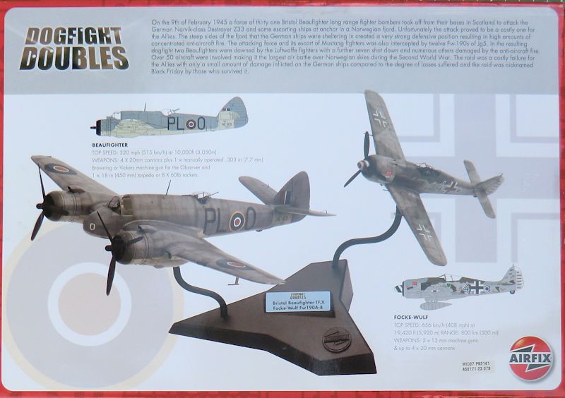 Dargestellt werden soll übrigens eine Szene vom 09. Februar 1945 vor Norwegens Küste. An dem Tag griffen 30 Beaufighter den deutschen Zerstörer Z33 an. Dabei wurden sie von Fw 190 des Jagdgeschwaders 5 überrascht. Es wurden neun Beaufighter abgeschossen und einige schwer beschädigt. Über 50 Flugzeuge waren in diesem Gefecht beteiligt.