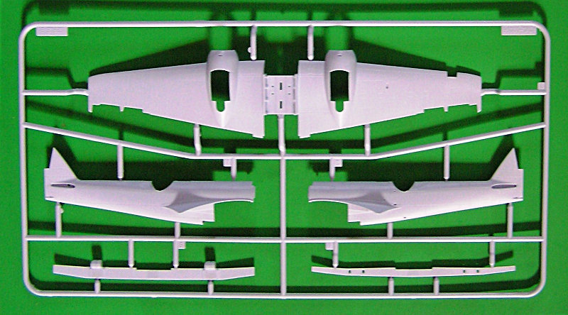 Der Bausatz: Erster Eindruck: großer stabiler Karton, optisch ansprechend, da schon auf der Kartonbild auch die zwei Abziehbildvarianten dargestellt sind. Der Karton ist randvoll gefüllt, drei große und zwei mittelgroße Spritzrahmen, sowie übersichtliche Bauanleitung und separat verpackte Klarsichtteile. Und nun zu den Teilen: detaillierte Motoren (Doppelstern), gute geformte Luftschrauben und gut detaillierte Motorgondel und Auspuffe. Auch beim Fahrwerk kann man nur sagen: „ sehr gut“ wiedergegeben, Reifen abgeflacht und mit vernünftiger Radkappe.