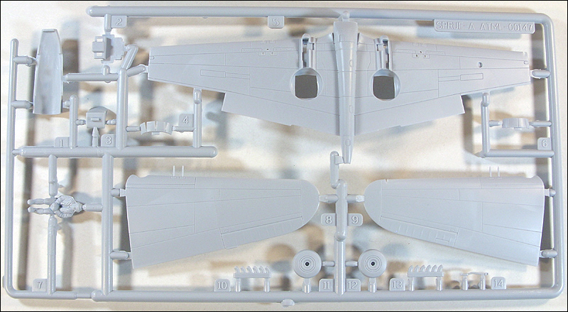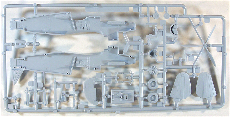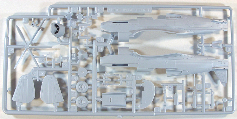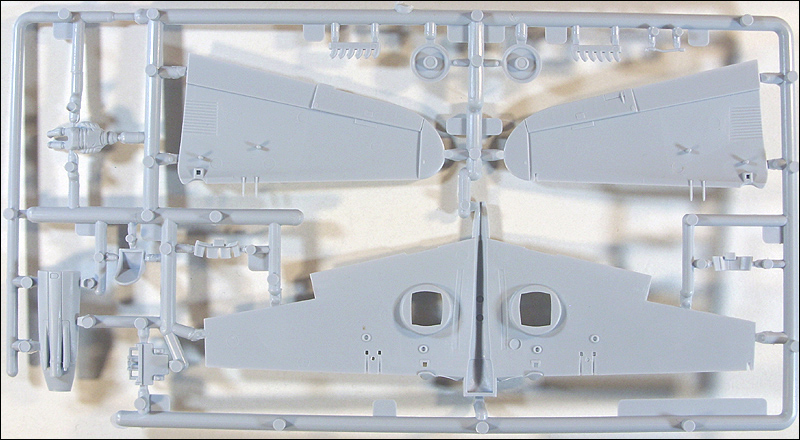 Der Bausatz enthält wie gehabt zwei hellgraue Spritzlinge, einen durchsichtigen Spritzling für die Cockpithaube, einen Decalbogen und die farbige Bauanleitung. Diese ist gut zu studieren. Auswerfermarken an falschen Stellen, Sinkstellen sowie Flash sind nur in äußerst geringem Maße vorhanden. Über die Passgenauigkeit kann hier noch nichts gesagt werden, das wird erst der Bau zeigen.