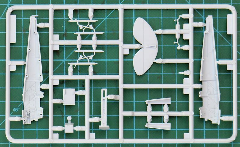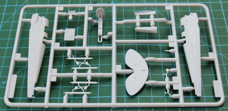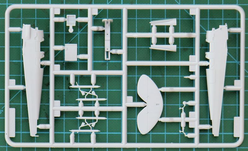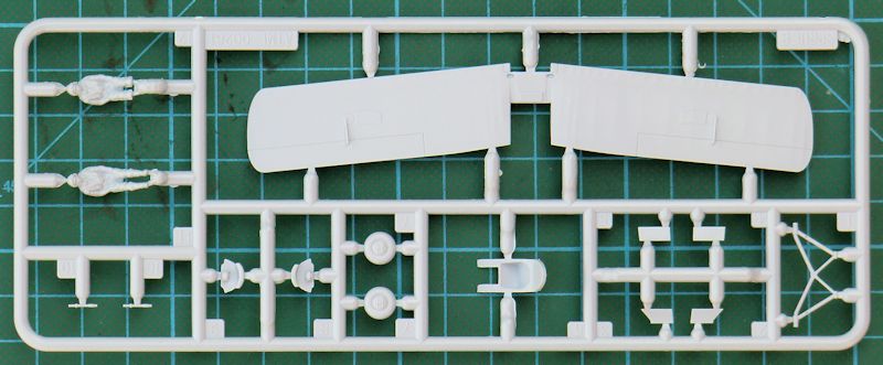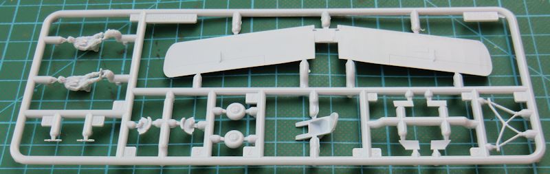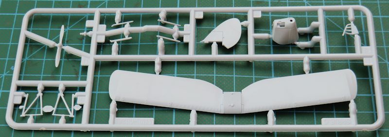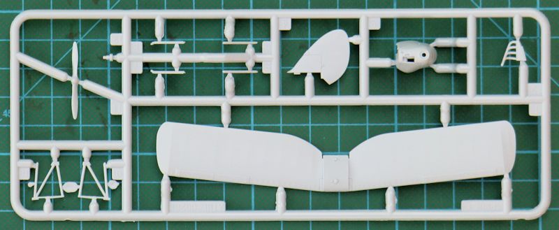 Das Rumpfvorderteil wird aus einem Stück bestehend separat angeklebt. Dadurch sieht die Motorhaube einfach gut aus. Die untere und obere Tragfläche bestehen jeweils aus einem Stück. Dadurch ist die jeweilige Pfeilung gut getroffen. Das gilt auch für die Stoffstruktur. Es gibt auch schön scharfe Hinterkanten. Das gilt auch für das jeweils einteilige Höhen- und Seitenleitwerk. Die äußeren Streben der Tragflächen besitzen ein Kunststoffkreuz. Das soll nach dem Verkleben der Flächen entfernt werden. Eine gute Idee.