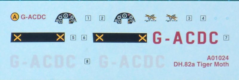 Der kleine Decalbogen ist tadellos im Register auf hellblauem Trägerpapier gedruckt. Die Farbhinweise sind für das System von Humbrol.
