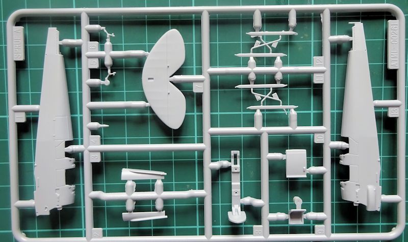 Bausatz: Die abgespeckte attraktive Box enthält die Neuauflage der 2014er Neuheit. Sie besteht aus gut verpackten drei hellgrauen Spritzlingen mit insgesamt 40 Teilen, zwei Klarsichtteilen, einem kleinen Abziehbilderbogen und der Bauanleitung.