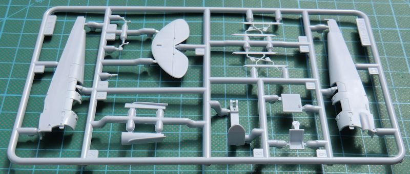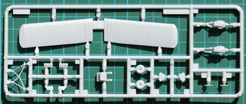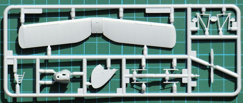 Das Rumpfvorderteil wird aus einem Stück bestehend separat angeklebt. Dadurch sieht die Motorhaube einfach gut aus. Die untere und obere Tragfläche bestehen jeweils aus einem Stück. Dadurch ist die jeweilige Pfeilung gut getroffen. Das gilt auch für die Stoffstruktur. Es gibt auch schön scharfe Hinterkanten. Das gilt auch für das jeweils einteilige Höhen- und Seitenleitwerk. Die äußeren Streben der Tragflächen besitzen ein Kunststoffkreuz. Das soll nach dem Verkleben der Flächen entfernt werden. Eine gute Idee.