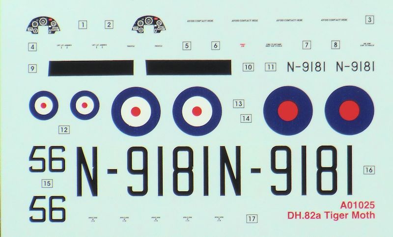 Der kleine Decalbogen ist tadellos im Register auf hellblauem Trägerpapier gedruckt. Die Farbhinweise sind für das System von Humbrol.