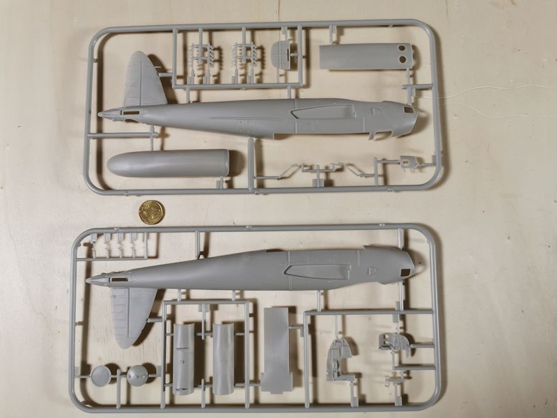 Was sofort angenehm auffällt, den Rumpf gibt es zweimal! Hier hat Airfix wirklich gut gearbeitet. Da die Typen Mk. XVI und PR. XVI unterschiedliche Bugverglasungen und untere Rumpföffnungen besaßen, wurden einfach beide Rümpfe bereitgestellt. Damit entfällt ein mühsames Scratchen.