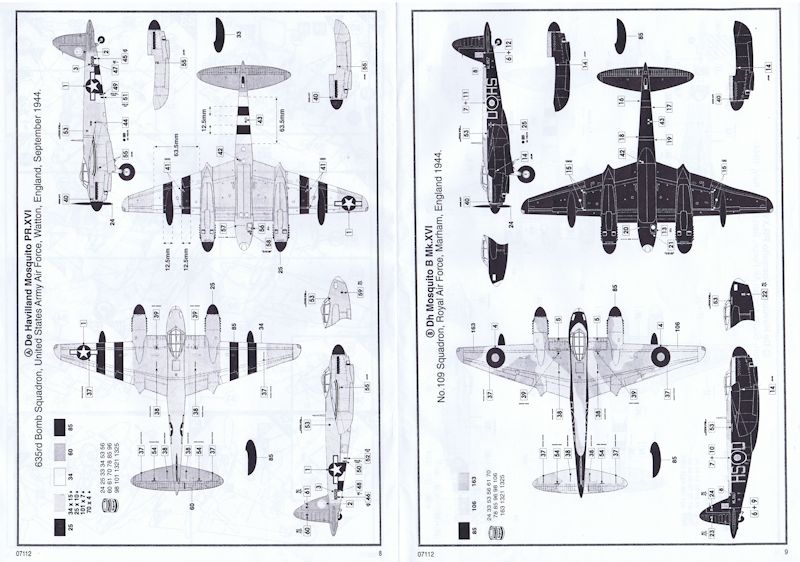 Bauanleitung/Bemalung: Die in S/W, DIN A4 zehnseitige Bauanleitung führt in 27 Schritten durch den Bau. Die letzten drei Seiten zeigen die Bemalung und Decals für drei mögliche Maschinen. Während des Baus ist es auf jeden Fall wichtig, sich an die Anleitung zu halten, da ja zwei unterschiedliche Baumuster gebaut werden können. Noch ein kurzes Wort zu den angegebenen Farben. Airfix empfiehlt Humbrol Enamel Farben. Leider stehen in der Bauanleitung nur die Farbnummern! Also muss man sich aus dem Internet den dazugehörigen Farbton suchen, und entscheiden, welchen Hersteller man nimmt.