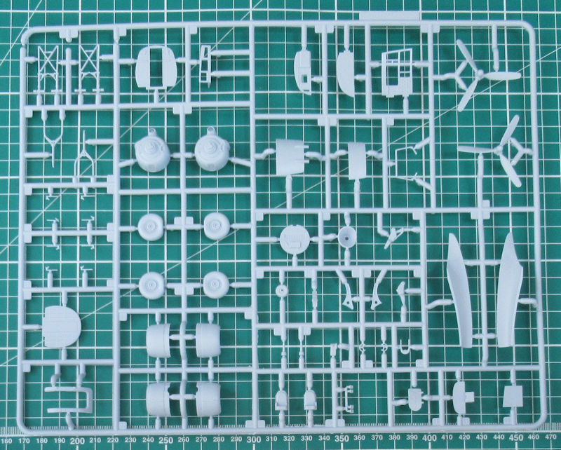Vom Brandschott an gibt es separate Teile für die Motorgondeln. So entsteht der P&W R-1830 aus je vier Teilen. Darüber kommen die zweiteiligen Motorverkleidungen. Bei den Luftschrauben gibt es auch die frühen Exemplare. Diese wandern in die Restekiste und lassen uns auf eine andere Version hoffen. Das Fahrwerk ist sehr detailliert und voll auf der Höhe der Zeit. Die abgeflachten Hauptfahrwerksräder sind gut gemacht.
