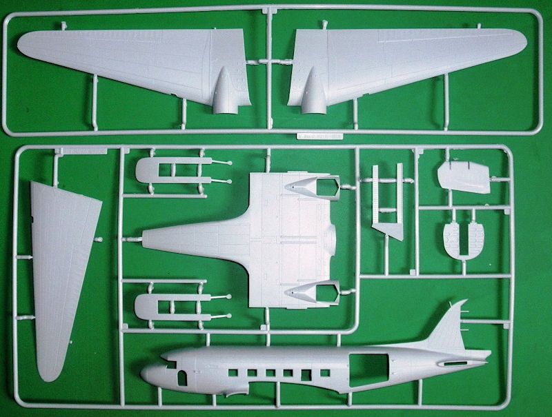Bausatz: Der sehr schöne und stabil gestaltete Karton verbirgt eine C-47 Dakota IV, die die alten Bausätze von Revell, ITALERI, ESCI und co. ablöst. Die Spritzgussqualität ist gut und keiner der Spritzrahmen ist verzogen. Die Gravuren sind fein und gut ausgeführt. An fünf grauen Spritzrahmen sind alle Teile bruchsicher untergebracht.