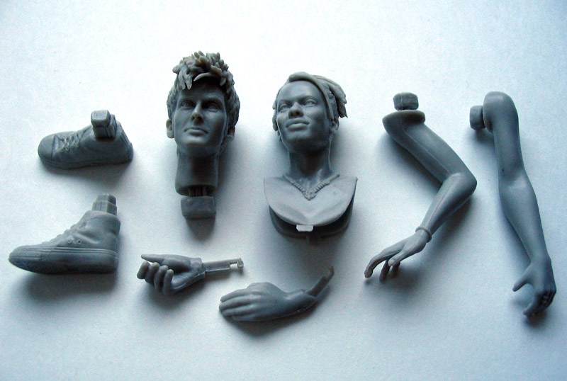 Warum Köpfe, Arme und Füße in Gummi hergestellt wurden, bleibt ein Rätsel, vielleicht, um die feinen Gesichtszüge besser darstellen zu können ... denn die sind wirklich klasse gelungen! Aber leider aus Gummi? Diese Teile sollten auf jeden Fall vor der Bemalung mit einem Primer grundiert werden.