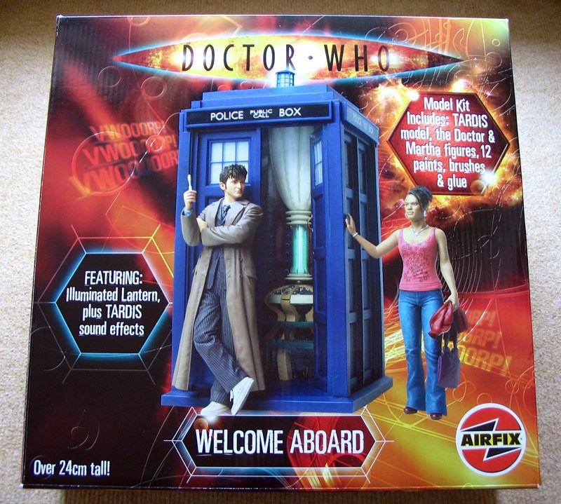Enthalten ist neben der Figur des Dr. WHO und Martha nicht nur die Telefonzelle TARDIS, welche zusammengesetzt 24 cm hoch wird und im Inneren durch viele Klarsichtteile besticht, sondern auch ein umfangreiches Bastelset der Firma Humbrol, welche Plastikkleber, 12 Farben auf Acrylbasis und drei hochwertige Pinsel enthält.