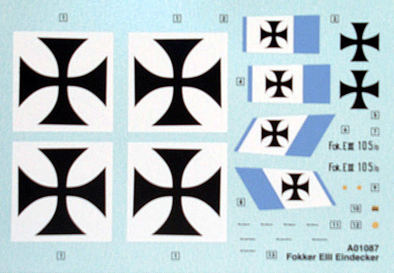 Vorbild: Die Fokker E.III entstand bei Fokker in Schwerin als Weiterentwicklung der E II, von der sie sich kaum unterschied. Der wesentliche Unterschied bestand in einem vergrößerten Tank. Den Ursprung hatten beide Typen in der Fokker A.III und E.I. Letztere war das erste mit einem synchronisierten MG ausgerüstete Jagdflugzeug. Es hatte am 19. oder 20. Mai 1915 seinen Erstflug mit Fokker.