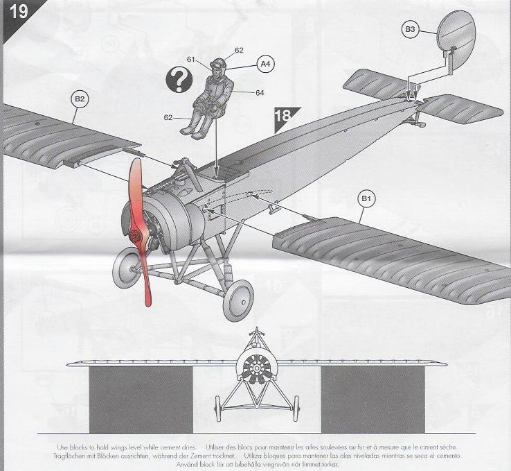 Die übersichtliche Bauanleitung führt in 19 Schritten zum Ziel. Sie enthält einen Vorschlag für die Positionierung der Tragflächen. Der Verspannungsplan ist sehr ausführlich.