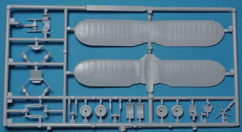 Der hier vorgestellte Bausatz A02052 "Made in India" mit Cartograf-Decals umfasst 51 graue und durchsichtige Plastikteile auf drei Spritzrahmen und wird sauber in Tüten verpackt im Stülpkarton geliefert. Konsequent hat Airfix hier auch wieder die Strebenbauweise, die schon bei der "Swordfish" verwendet wurde, umgesetzt und eine durchaus ausreichende Cockpit-Inneneinrichtung beigelegt. Für die Darstellung der Armaturen liegen wiederum Decals bei.