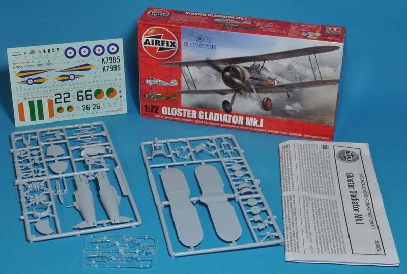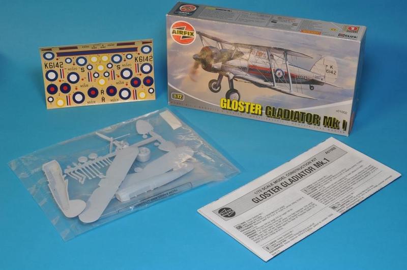 Der Bausatz: Die Gladiator war und ist an sich kein berühmtes Flugzeug, geschweige denn ein "optisches Highlight". Dennoch haben sich im Laufe der Jahrzehnte durchaus einige Hersteller an die Umsetzung dieses Typs "gewagt". Bereits 1936/37 hatte Frog in seiner Penguin-Serie die "Gladiator" im Programm, der erste Airfix-Bausatz folgte 1956, gefolgt 1997 von einer überarbeiteten Form.