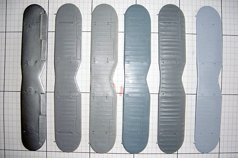 Doch jetzt zum Vergleich. Hier stelle ich die Bauteile bzw. -stufen nebeneinander. Der alte Airfix wird im Foto gezeigt aber nicht in den Vergleich einbezogen, da er nur historischen Wert besitzt. Der Pavlabausatz lag mir nicht vor, siehe dazu First Look Gladiator.