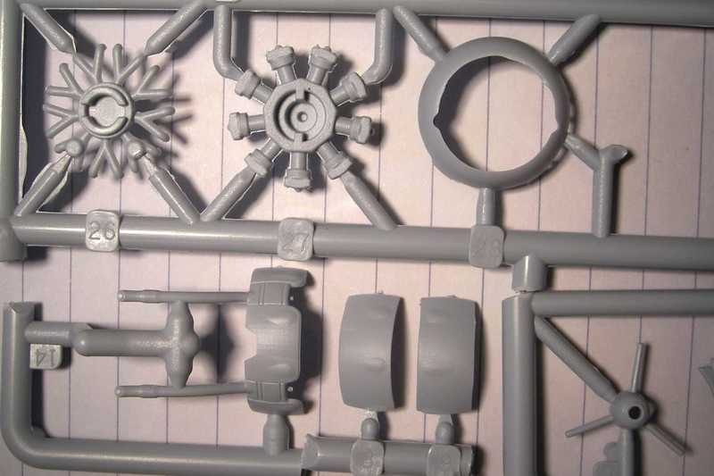 Räder Im Durchmesser weichen sie minimal voneinander ab. Hellers hat auch die „Speichenräder“, deren Einsatz sollte aber anhand von Fotos geprüft werden. Bei Airfix sind sie auch im belasteten Zustand dabei.