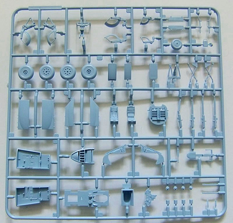 Bausatz: Der Bausatz selbst, ist ein typisches Produkt der neuen Airfix Generation. Da wäre erst einmal ein attraktiver, stabiler Stülpkarton. Der Fan solcher Bausätze kann einfach nicht daran vorbei gehen. Im Karton befinden sich 165 Einzelteile im traditionellen Airfix-Hellblau. Die Teile machen auf den ersten Blick einen hervorragenden Eindruck und vermitteln, was das Modell an Besonderheiten hergibt.