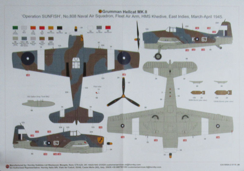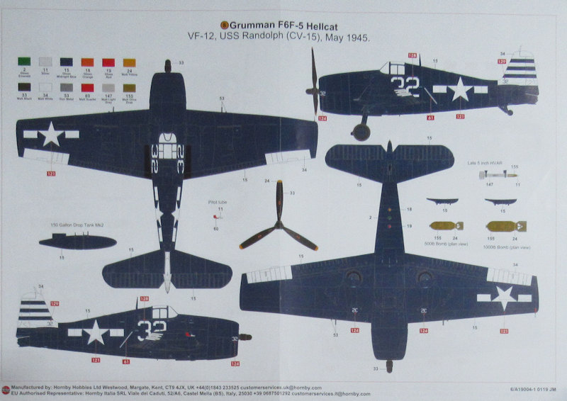 Der große Decalbogen ist tadellos im Register gedruckt. Die gewählten Farben überzeugen mich und die Wartungshinweise sind lesbar. Bei den Farbhinweisen bezieht man sich auf Humbrol.