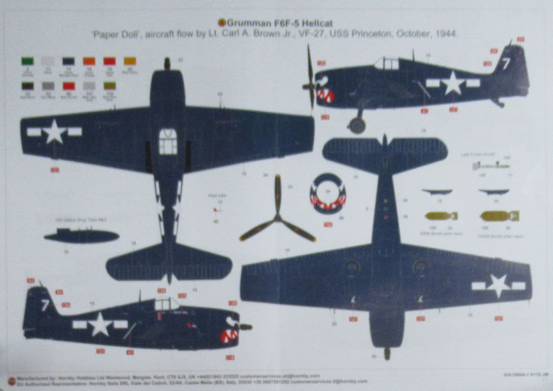 Vorbild: Es gab wenige Flugzeugtypen, die am zweiten Weltkrieg teilnahmen, die ein solch einseitiges Abschuss/Verlust Verhältnis aufwiesen, wie die Hellcat. Das Zentrum der "Cat"-Reihe von Grumman bildend, war die Hellcat von Beginn an etwas Besonderes. Ob des Erfolgs des Vorfahren, der Wildcat, welche die Masse des Pazifischen Luftkriegs bis ins Jahr 1942 schulterte, erhielt Grumman von der US Navy freie Hand für die unabhängige Entwicklung eines neuen Jagdflugzeuges. Dieses Flugzeug sollte als Rückversicherung für den Fall eines Misserfolgs der F4U Corsair fungieren. Grummans Designer legten bei der Entwicklung großen Wert auf einfache Herstellung, hohe Leistungen und optimale Eignung für den Trägereinsatz. Am 30.Juni 1941, als die Corsairproduktion startete, unterzeichnete die Navy die Bestellung für zwei Prototypen XF6F-1 ... and a star was born.