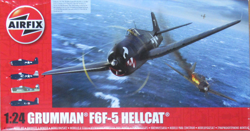 Bausatz: Als Airfix im November 2018 auf Telford das Geheimnis um "den" Bausatz des Jahres 2019 lüftete reagierte manch ein Beteiligter etwas verstört, denn bekanntlich ist die Grumman Hellcat kein Flugzeug britischen Ursprungs. Dieser Bausatz im Großmaßstab 1/24 ist recht wegweisend. Hier wurde erstmals eine realistische lebendige Flugzeugoberfläche nachgebildet. In dem attraktiven riesigen Stülpkarton befinden sich gut verpackt acht große Spritzgussrahmen mit 555(!) Teilen, ein klarer Rahmen mit 17 Einzelteilen, ein Decalbogen, die mehrfarbigen Bemalungs- und die Bauanleitung.