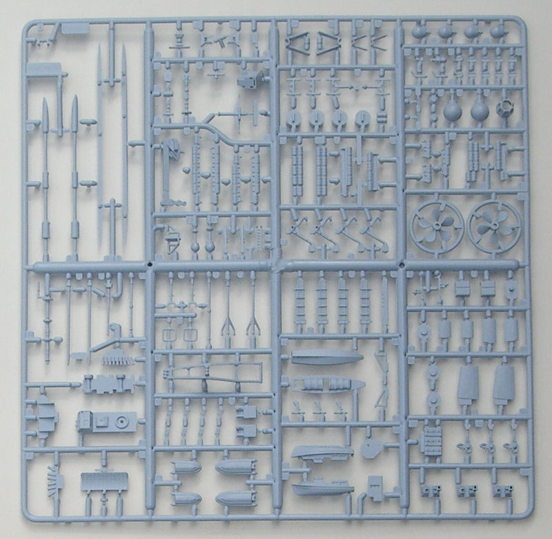 276 hellgraue Bauteile verteilen sich auf fünf Spritzlinge. Diese Teile sind nicht so fein wie man es aus China gewohnt ist. Dafür hat man in Indien auf robuste Angüsse Wert gelegt. Als Zielgruppe dürfte hier der „normale“ Modellbauer sein. Die Strukturen und die Gravuren sind etwas grob. Wer hier mehr will, der kann für den Bausatzpreis bei White Ensign Model auf der Insel fündig werden.