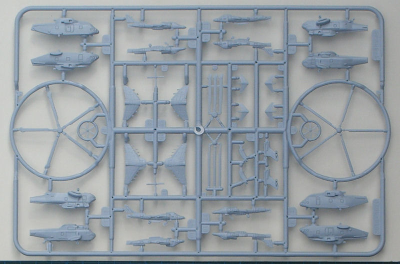 Etwas grobschlächtig für diesen Maßstab sind die Hubschrauber und die verschiedenen Harrier. Bei Trumpeter gibt es immerhin optisch bessere AV-8B Harrier II. Bei den restlichen Fluggeräten sollten immerhin die groben Strukturen verspachtelt werden.
