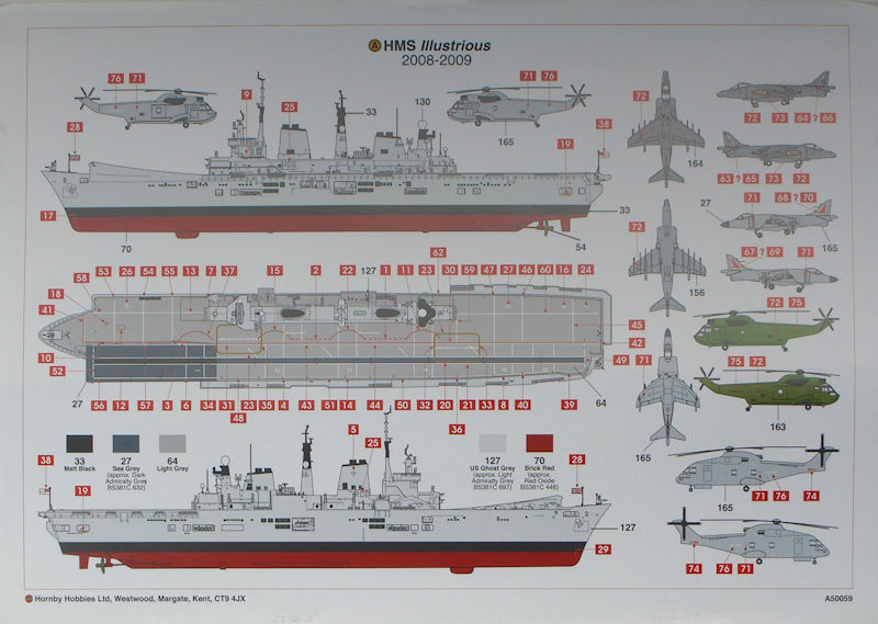Vorbild: Die HMS Illustrious ist das fünfte Schiff mit diesen Namen bei der britischen Marine(Royal Navy). Sie ist ein leichter Flugzeugträger und stammt aus der Invincilble-Klasse. Diese Schiffe haben bis zu 22 Harrier an Bord. Die Kiellegung war im Jahre 1978. Während des Falklandkrieges 1982 wurde sie nach dem Krieg in Dienst gestellt. Seit dieser Zeit wurde das Schiff mehrmals umgebaut. Bis die neuen Träger der Queen-Elisabeth-Klasse in Dienst gehen bleibt die HMS Illustrious eine wichtige Waffe der Royal Navy.