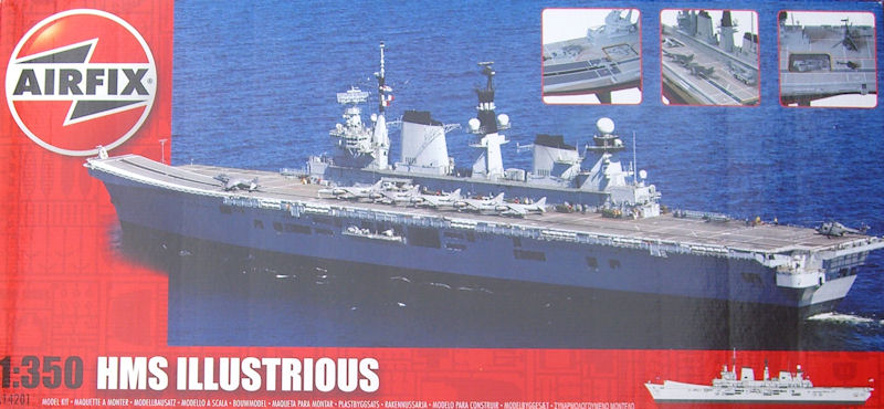 Bausatz: Airfix hat hier ein aktuelles Vorbild der Royal Navy herausgesucht und in ansprechender Form umgesetzt. Immerhin gab es die HMS Illustrious noch nicht in 1/350 als Spritzgussmodell. Die neuen Stülpkartons von Airfix sind nicht nur attraktiv sondern auch praktisch. Sie enthalten eine Menge praktischer Hinweise.