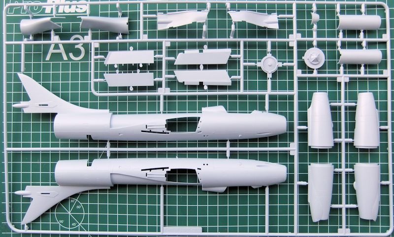 Einen Hinweis verdienen auch die beiden Sitzpolster für den Schleudersitz. Einmal mit einem toll aufgeprägten Gurtzeug das sich hinter Resinteile nicht verstecken muss, und einmal völlig glatt, für den der Gurtzeug selbst gestalten oder einen Piloten reinsetzen möchte. Ansonsten ist das Cockpit wie fast immer bei neueren Airfixmodellen gut gestaltet. Auch das Fahrwerk, nebst den Schächten und den Rädern sind eine Augenweide. Zumal sich die Firma diesmal bei der Abflachung der Räder zurückgehalten hat, was einen realistischen Eindruck beim Stand hinterlässt.