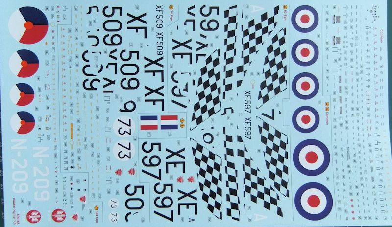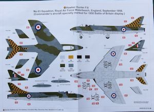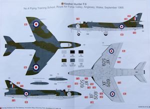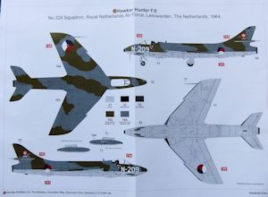 Bauanleitung/ Bemalung: Die Bauanleitung ist qualitativ so wie der gesamte Bausatz: Sehr gut. Neben der Schulvariante, bietet der sauber gedruckte Decalbogen eine Kommandeursmaschine mit dem schwarz gelben Schachbrettmuster wie auf dem Karton und eine Hawker Hunter der niederländischen Luftwaffe. Für alle drei Vorschläge liegen zwei Farbrisse bei.